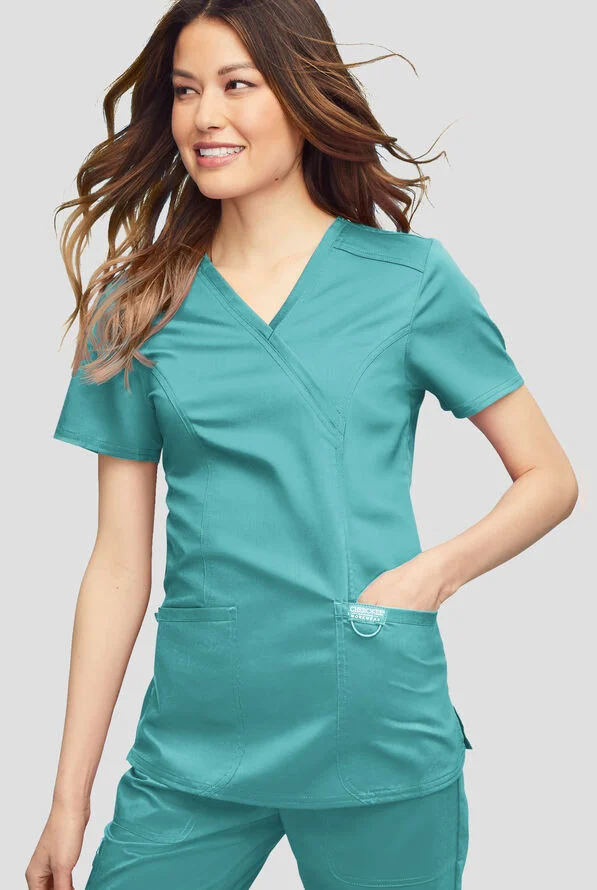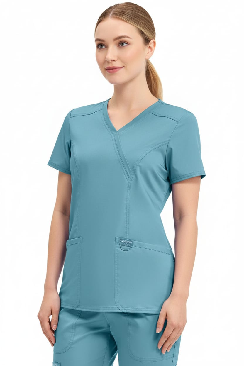 Bluza sa lažnim preklopom ima princess kroj, ramene šavove, tri praktična džepa (uključujući unutrašnji), bočne proreze i bungee držač za ID značku — savršen spoj stila i praktičnosti.