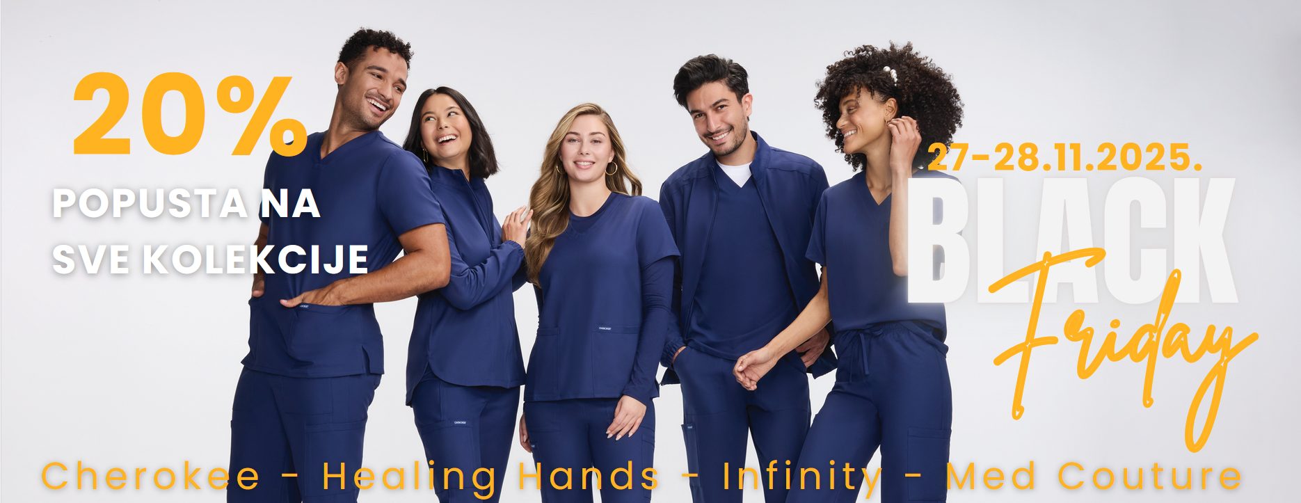 Ženski, duži medicinski mantil Infinity kolekcije. Sa donje, zadnje strane je polukružno sečen. Rukavi se mogu podvrnuti i kragna je poput košulje, a sa prednje strane se zakopčava čitavom dužinom manjim, skrivenim dugmićima. Ima dva prednja džepa. Kada je potpuno zakopčan može se nositi i kao haljina. Infinity kolekcija ima Certainty® antimikrobnu zaštitu tkanine koja sprečava širenje bakterija i ostalih mikroba.