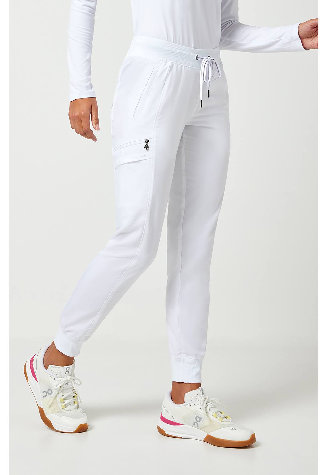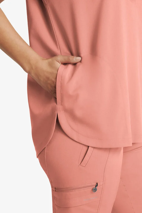 Ženski komplet brenda Healing Hands sa jogger pantalonama i oversized bluzom. Oversized bluza, sa koso sečenim širim rukavima, ima dva džepa. Pantalone su sa ranflom, vezuju se učkurom, imaju ukupno 7 džepova, dva prednja, dva zadnja i dva bočna od kojih je jedan dupli.